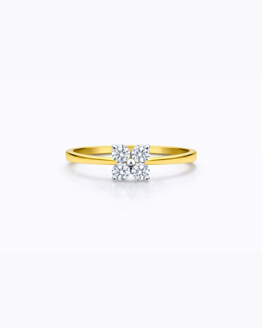 Delicate, playful, and effortlessly elegant, the Lucky Clover Diamond Ring captures the charm of fine jewellery with a touch of whimsy. At its centre sits a petite clover motif, formed from four tiny round brilliant diamonds that bloom softly against a sleek gold band.
